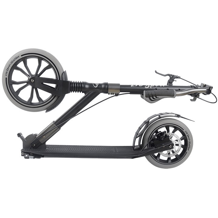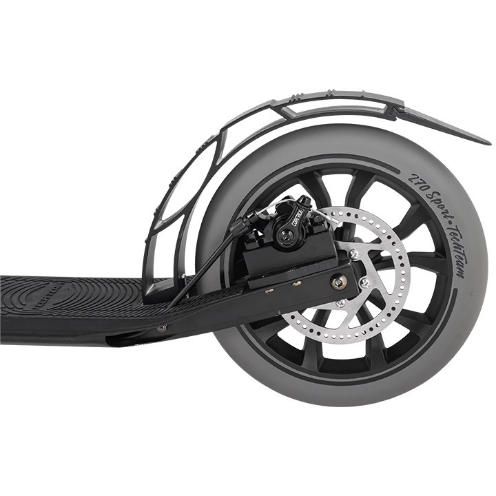 Проверенная линия городских самокатов Sport с передним амортизатором в 2020 году оснащается ручным дисковым тормозом специальной конструкции, исключающей помехи при езде. Задний ножной тормоз так же полностью переработан.