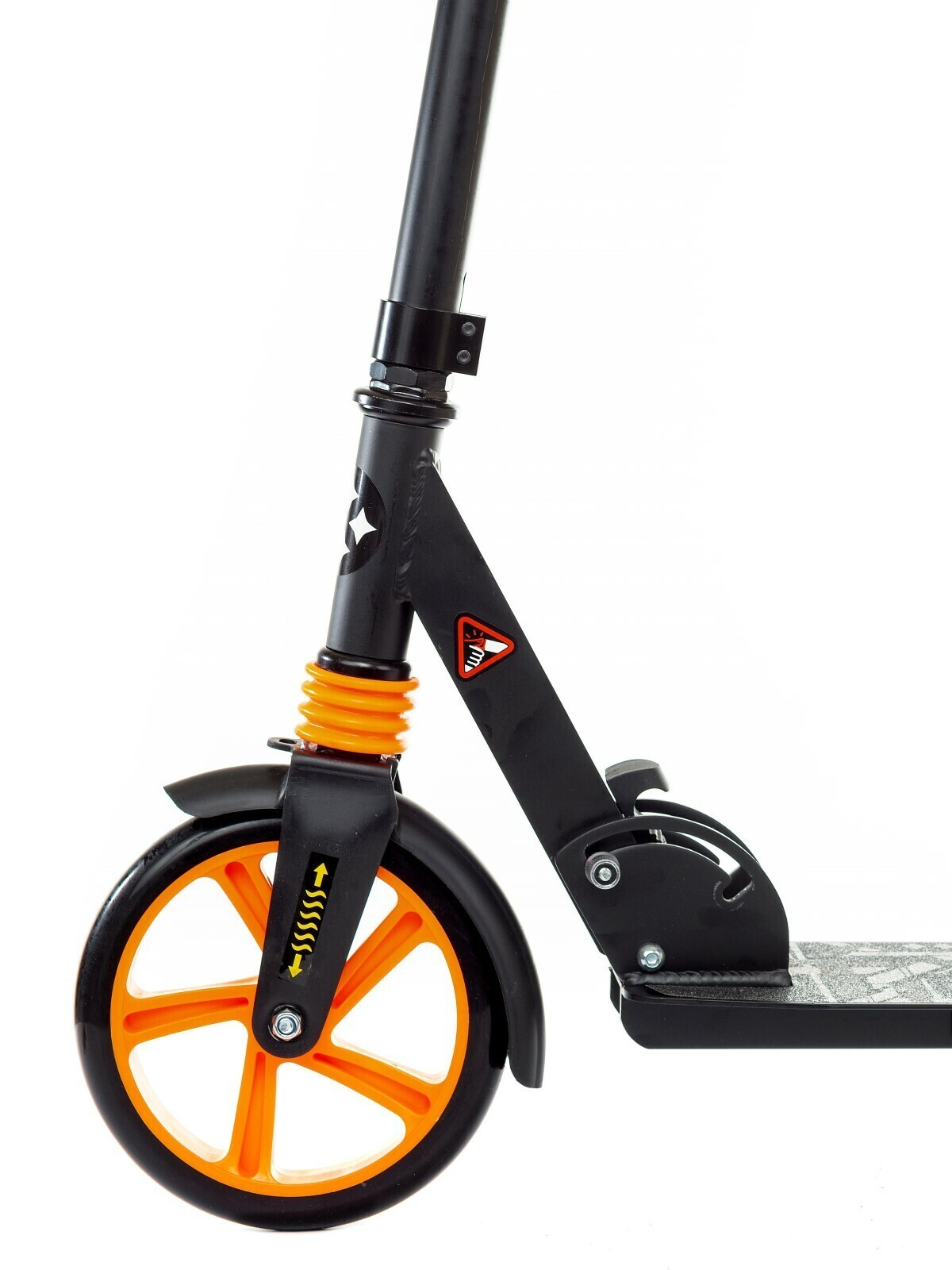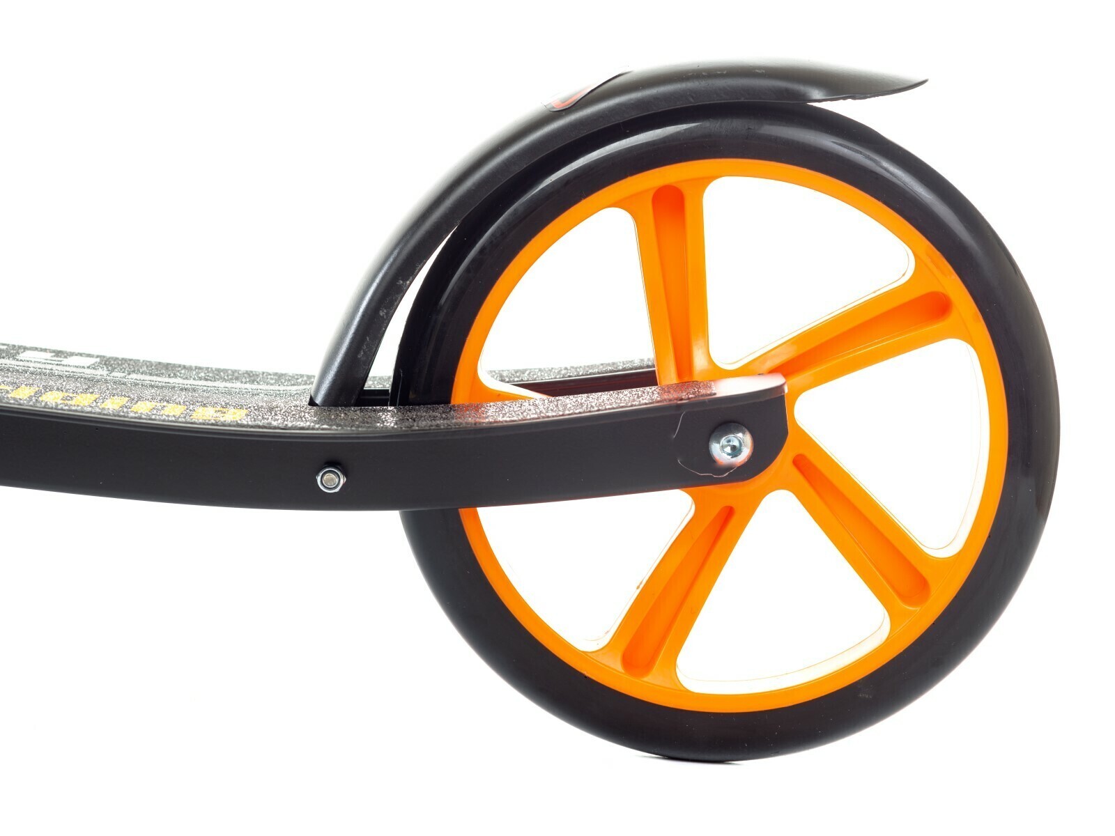 - Большие полиуретановые 200 мм. колёса на ярких оранжевых дисках выглядят эффектно и вместе с подшипниками АВЕС-7 обеспечат хороший накат.