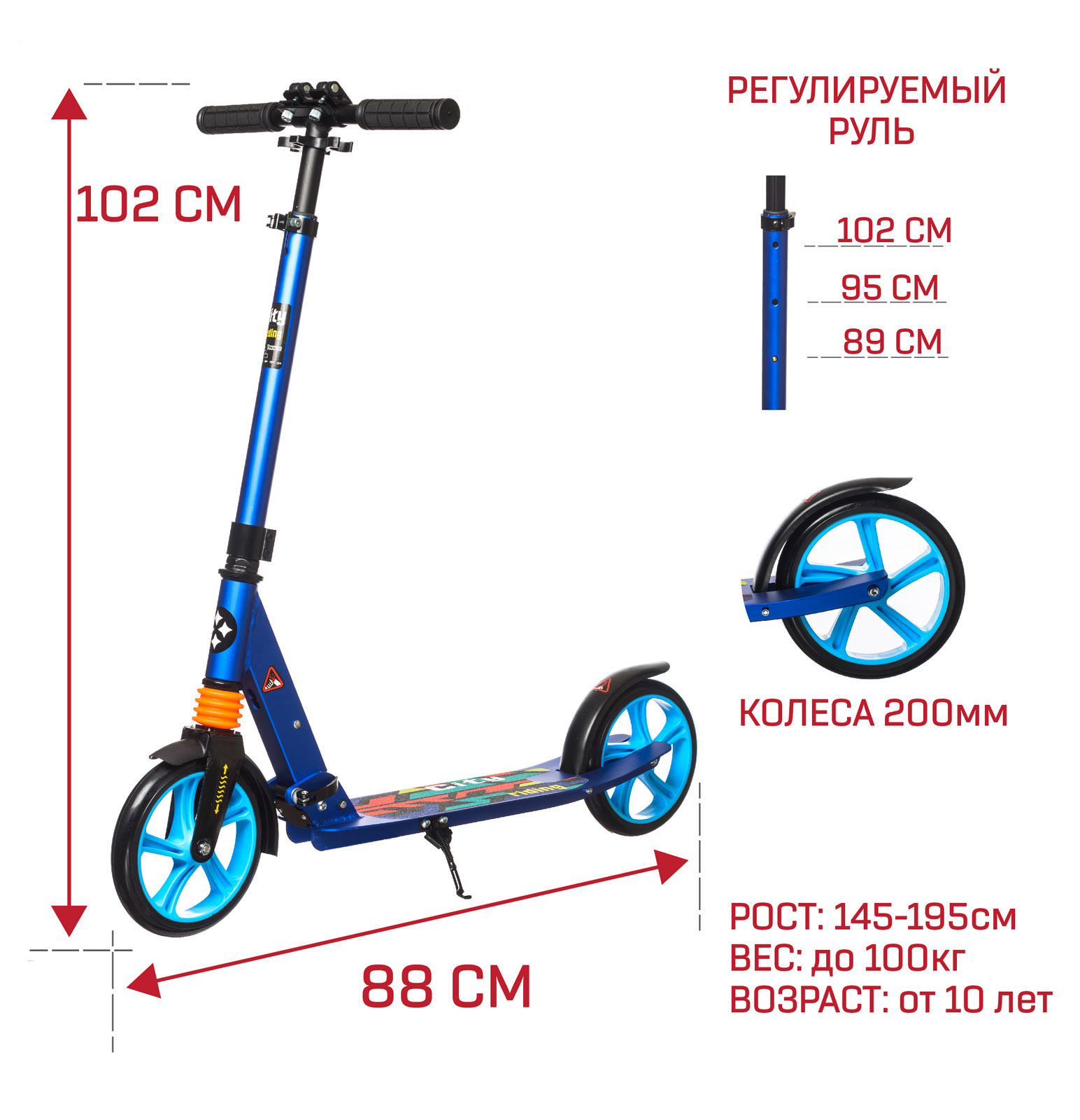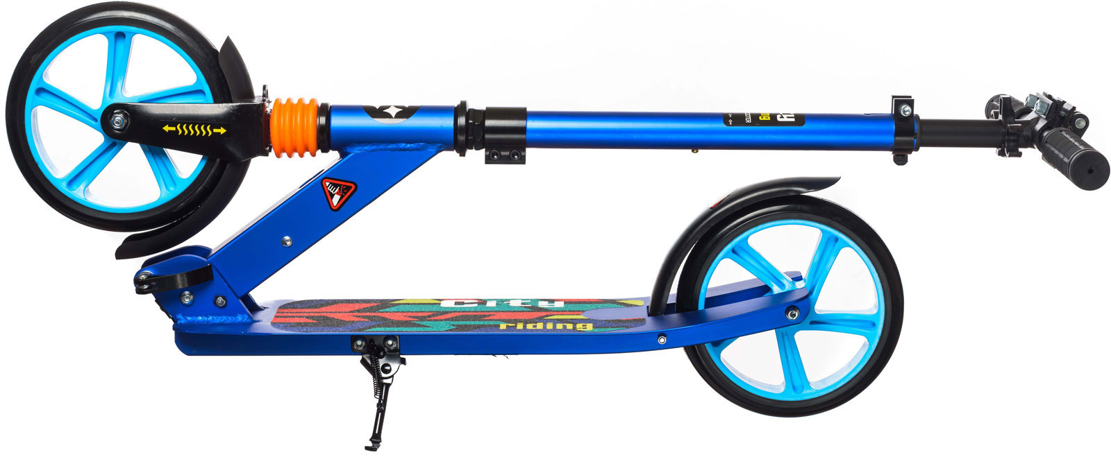 • Сити Райдинг 200 - это младшая модель Urban Scooter в линейке универсальных городских самокатов. Подойдёт как для взрослых ростом до 195 см., так и (благодаря регулировке руля) для детей старше 7-и лет.