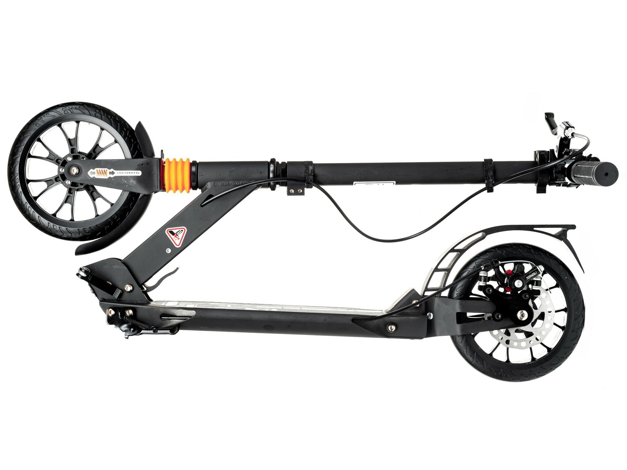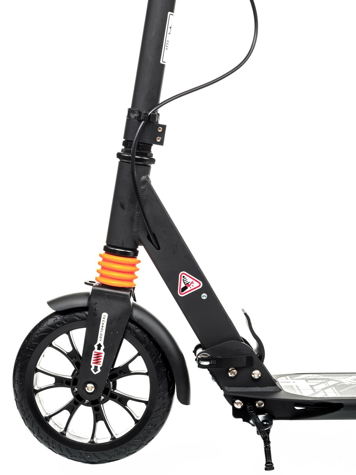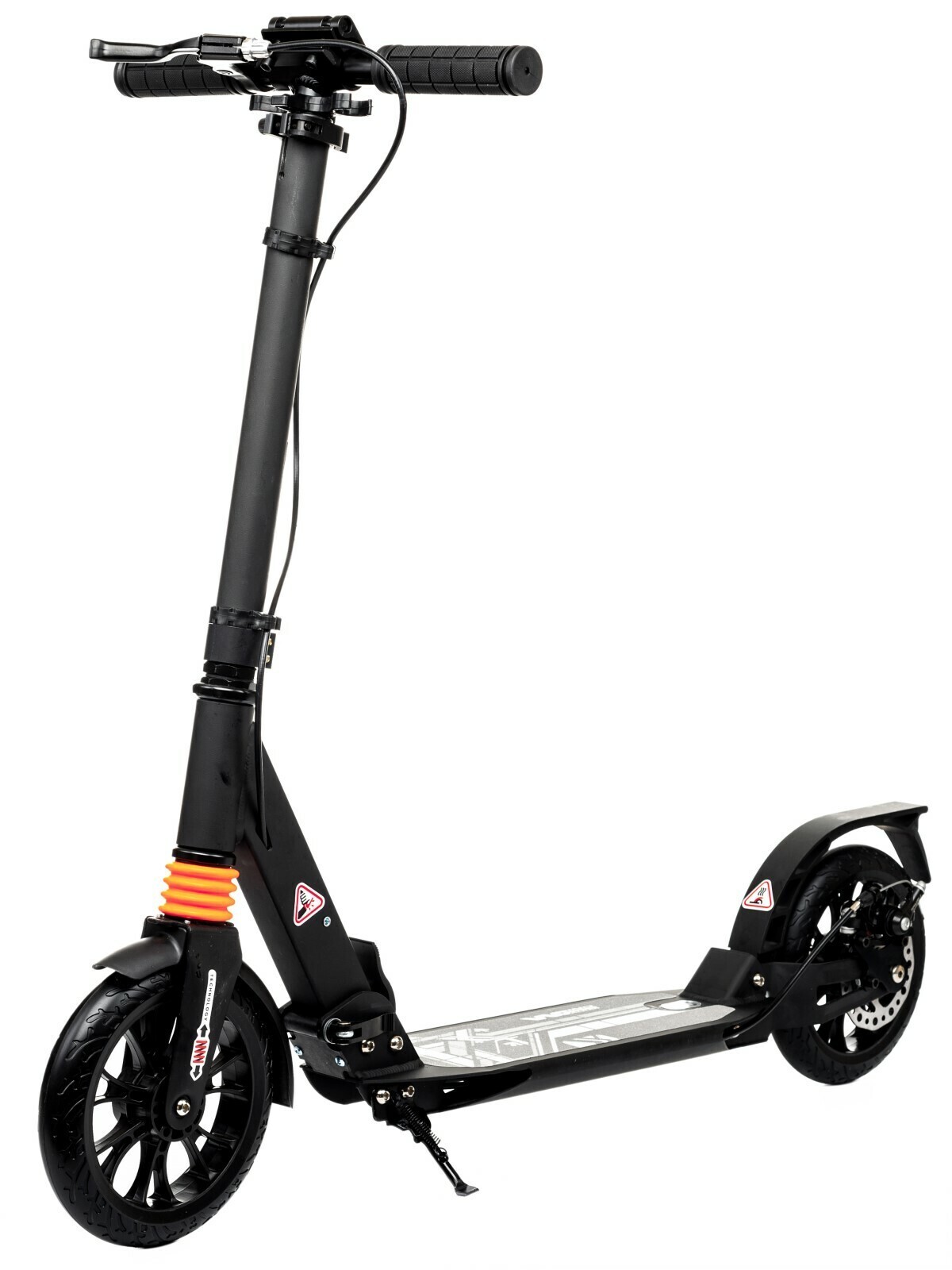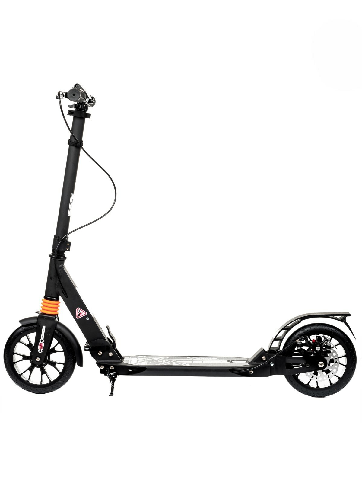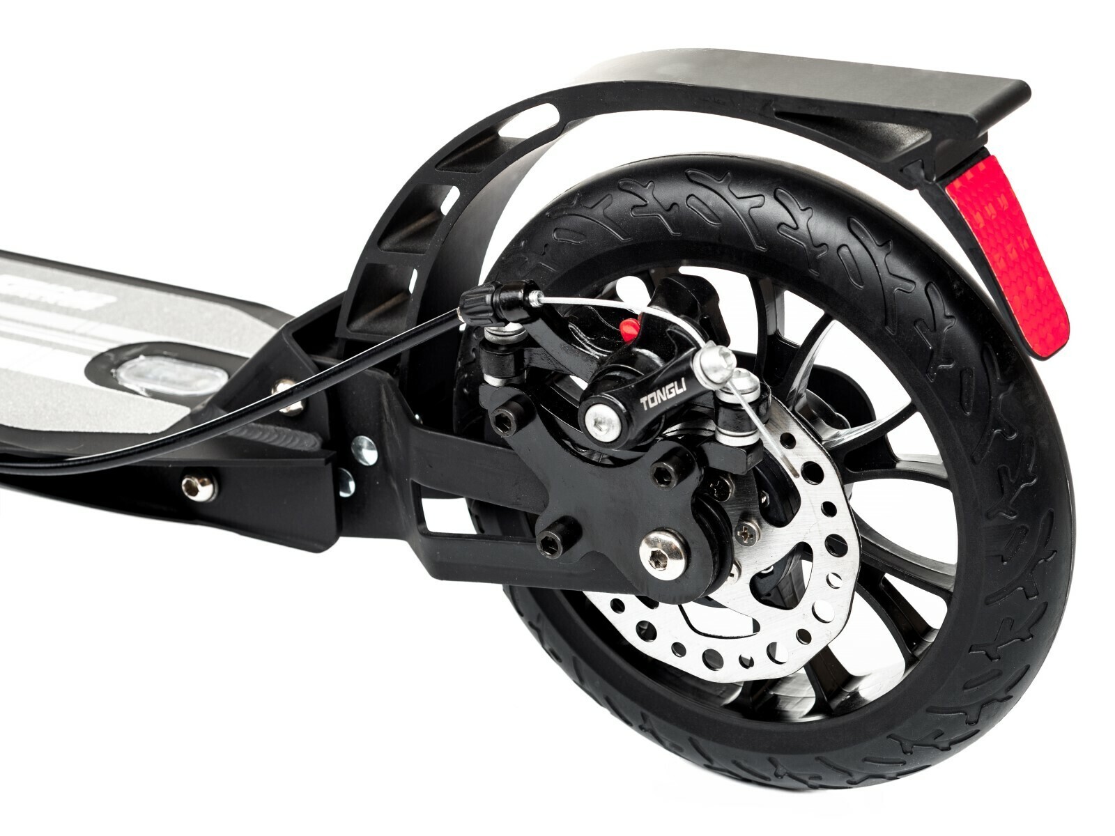 - Эффективно, не дергая, тормозит ручным дисковым тормозом и стандартным ножным Step-on-brake. Диск тормоза установлен с левой стороны. Это удобно, если вы толкаетесь правой ногой. Благодаря диску торможение эффективно даже в дождь. Эта модель названа Wingблагодаря оригинальной форме заднего металлического крыла-тормоза.
