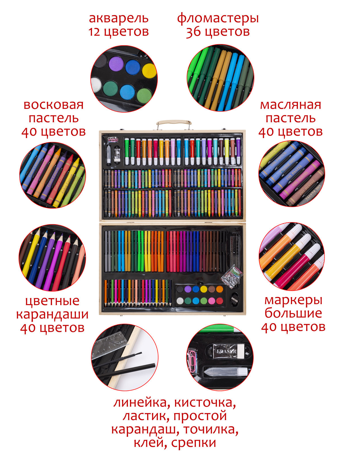Большой деревянный чемоданчик с 220 предметами для рисования - идеальный подарок ребенку