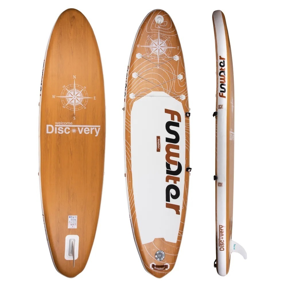 Надувная прогулочная доска Discovery – яркий вариант познакомиться с миром сапбордов. Устойчивый supboard Discovery повышенной грузоподъемности до 150 кг. Двухсторонний принт имитирующий натуральное дерево. с этой доской вы не останетесь не замеченным.
