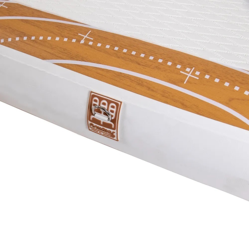 Носовая часть САП-доски оснащена крепкой карго системой в виде багажной сетки с шестью кольцами и регуляторами натяжения. Сапборд покрыт нескользящим ковриком из мягкой EVA-пены.