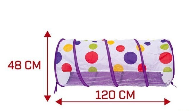 Размер Туннеля в разложенном виде диаметр - 48 см., длина - 120см. Изготовлено из текстильных материалов с элементами пластмассы. Рекомендованный возраст: 3 года +