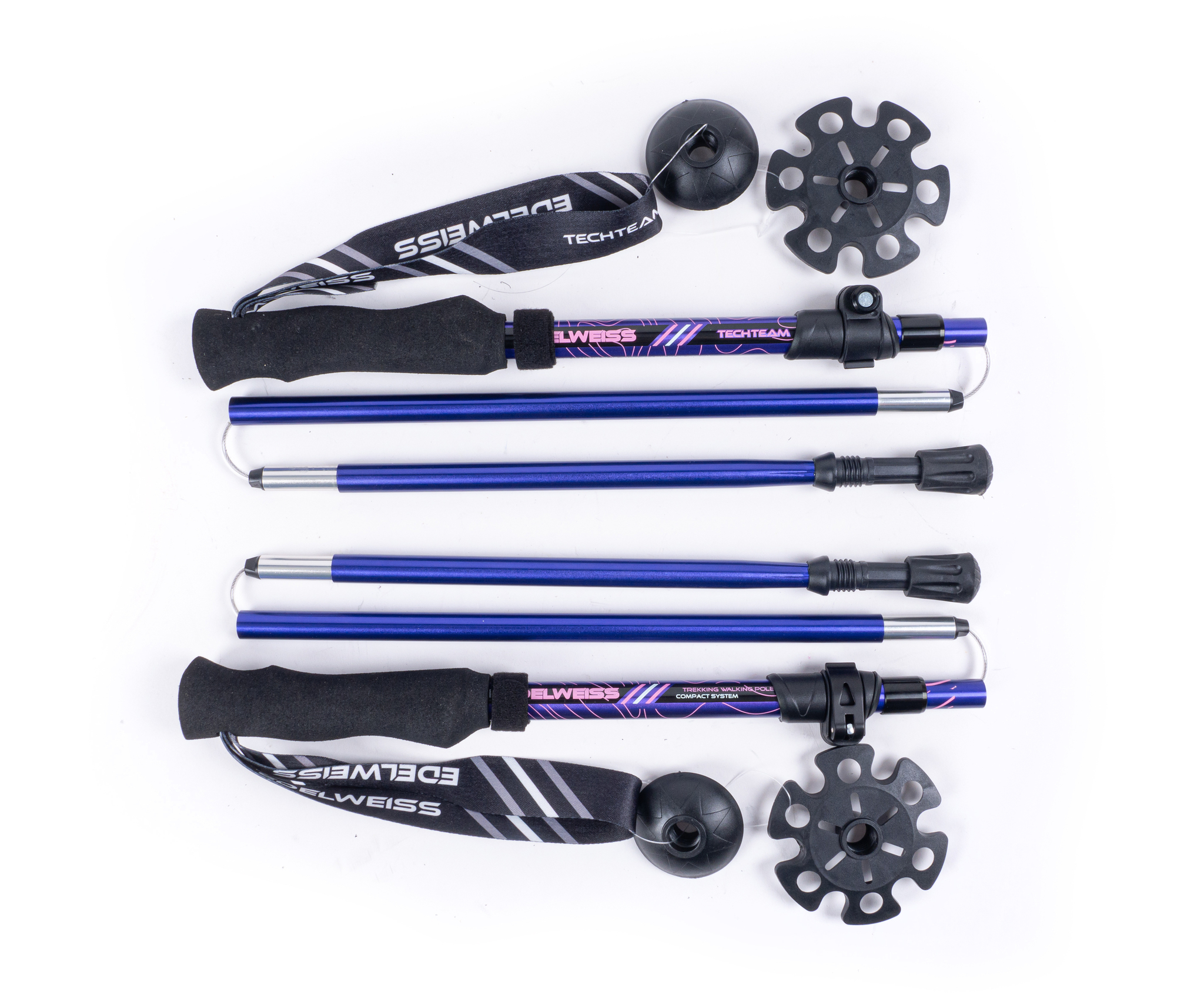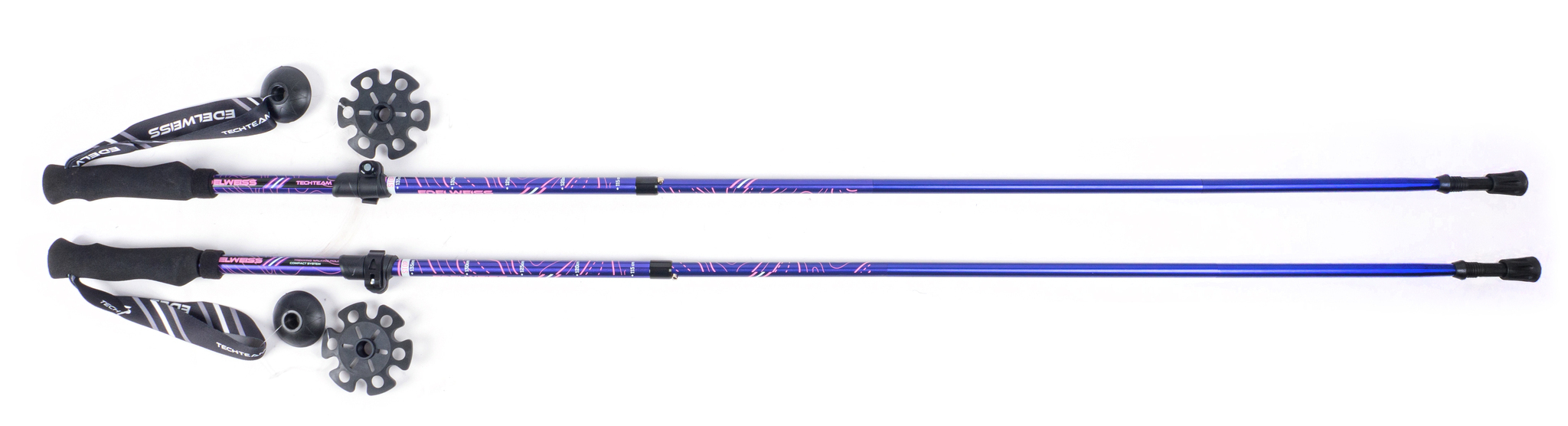 Палки для скандинавской ходьбы треккинговые Tech Team Edelweis Purple, 114-135см. 5-ти секционные телескопические алюминиевые