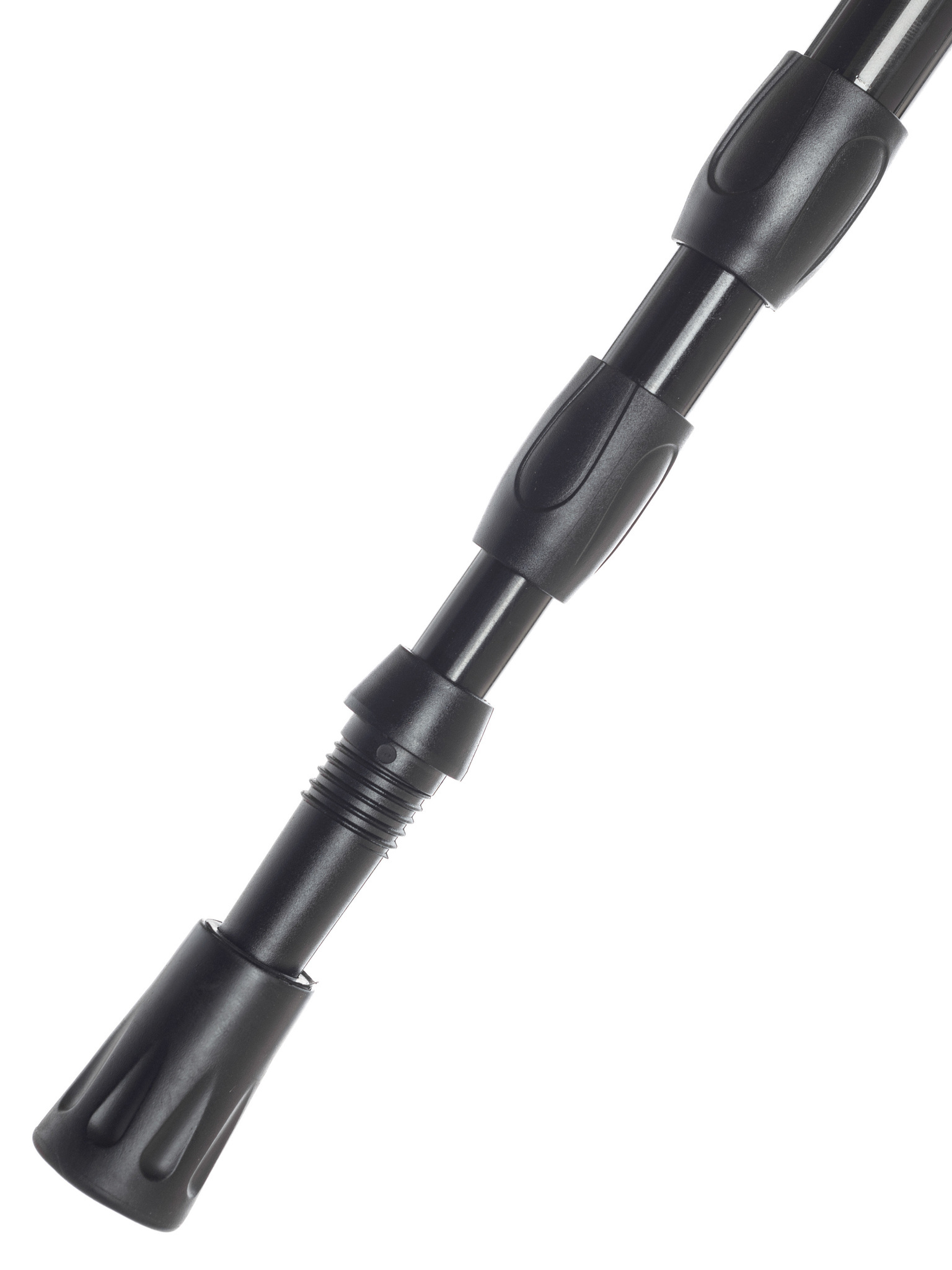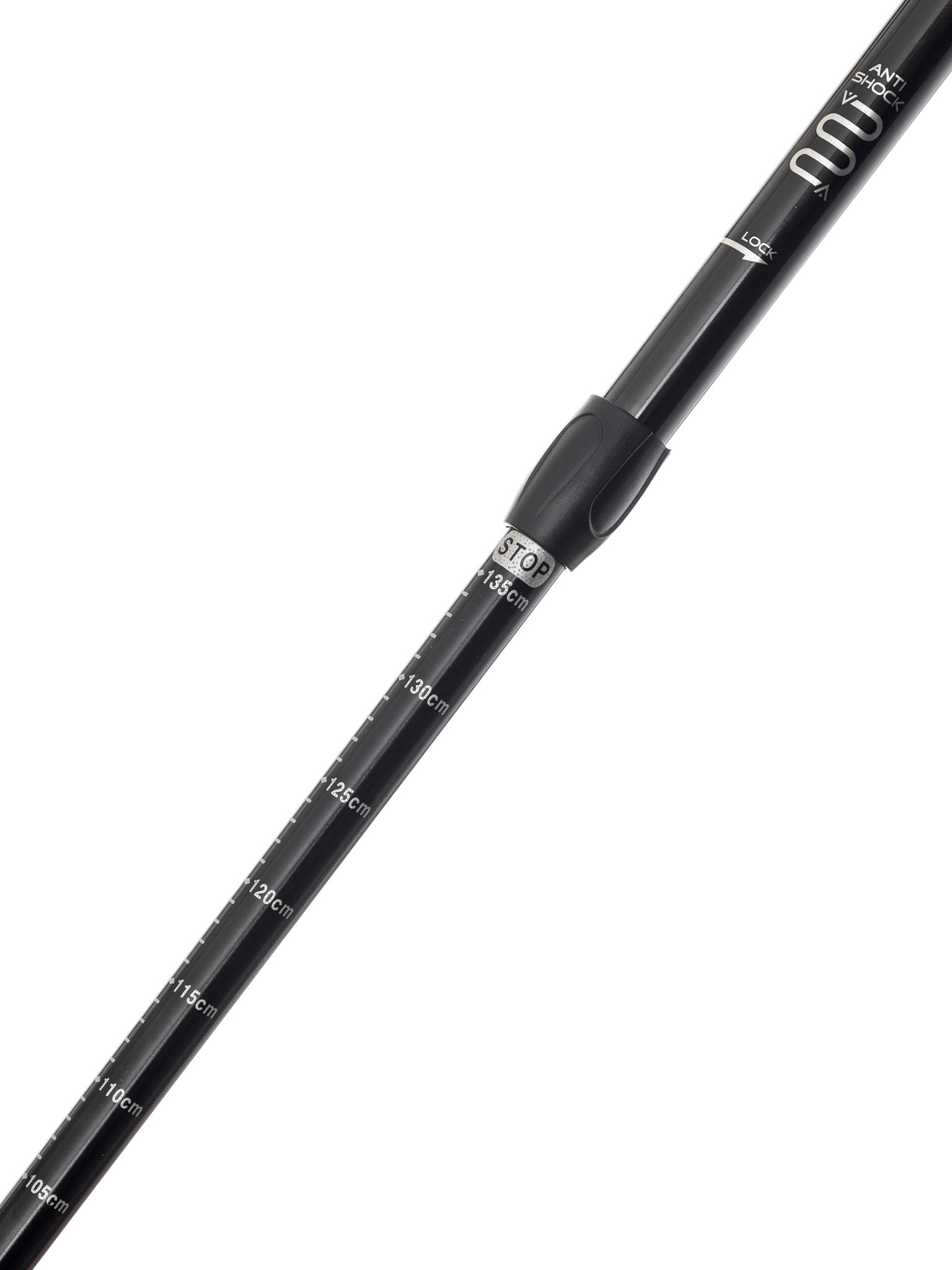 Антишок-система встроенная внутри палок, снимает ударную нагрузку с суставов туриста. Каждая палка состоит из трех секций. Длина палок в сложенном состоянии 63,5 см, в разложенном состоянии 135 см, что достаточно для роста до 195 см.