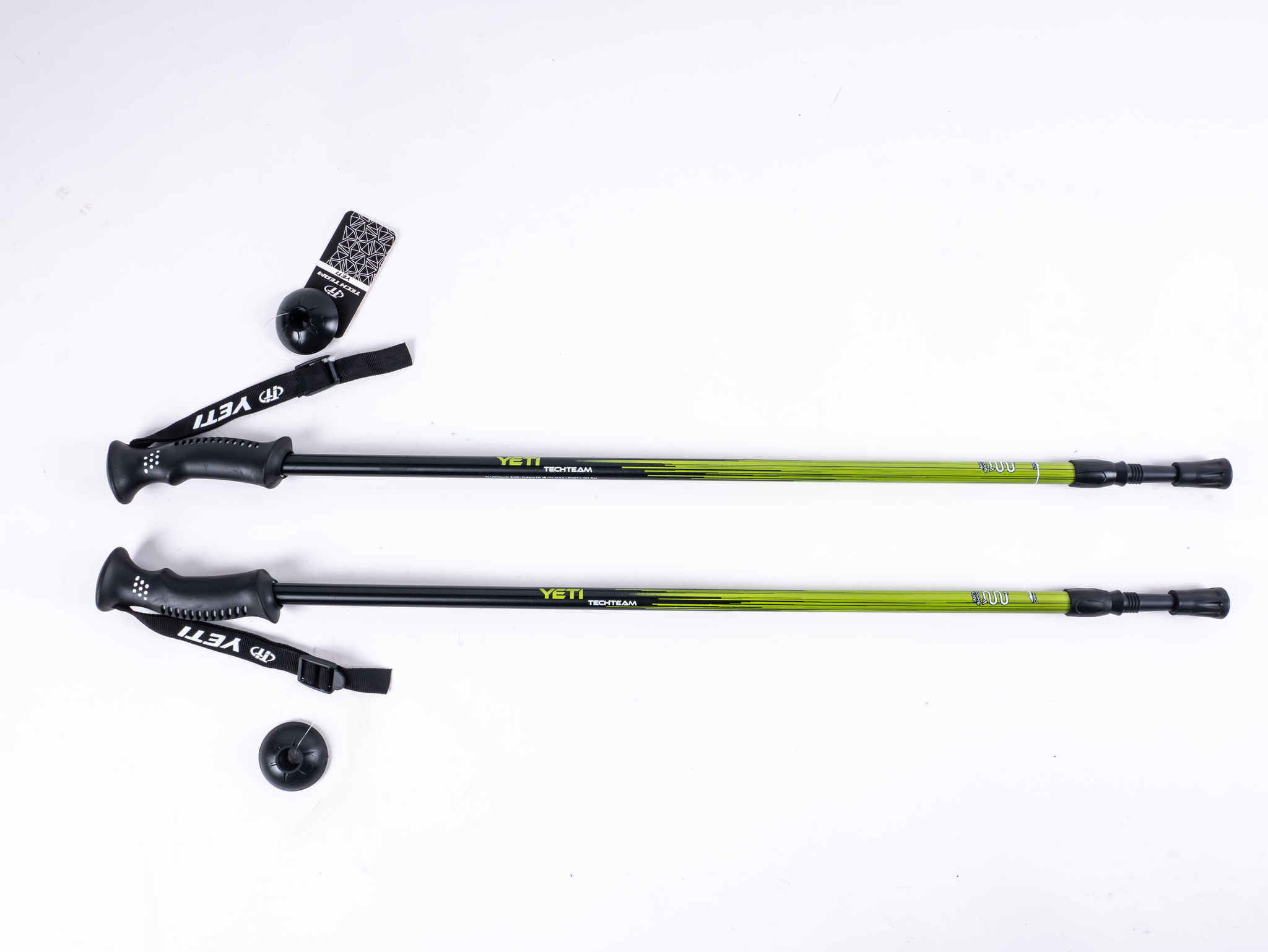 Палки для скандинавской ходьбы треккинговые Tech Team Yeti Green 115-135 см., двухсекционные телескопические алюминиевые, система-антишок