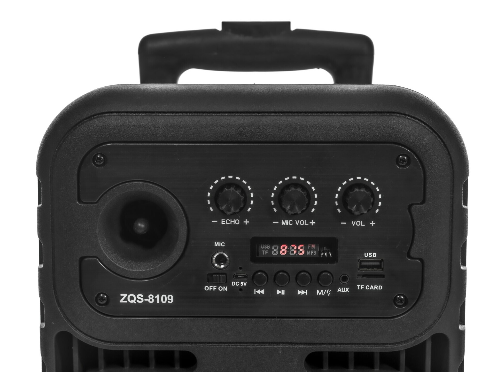 Большая мощная портативная акустическая система ZQS-8109 Bluetooth с микрофоном для караоке. Незаменима для отдыха в компании на природе. Громкий и мощный звук. По форме – чемоданчик с телескопической ручкой и колесами.