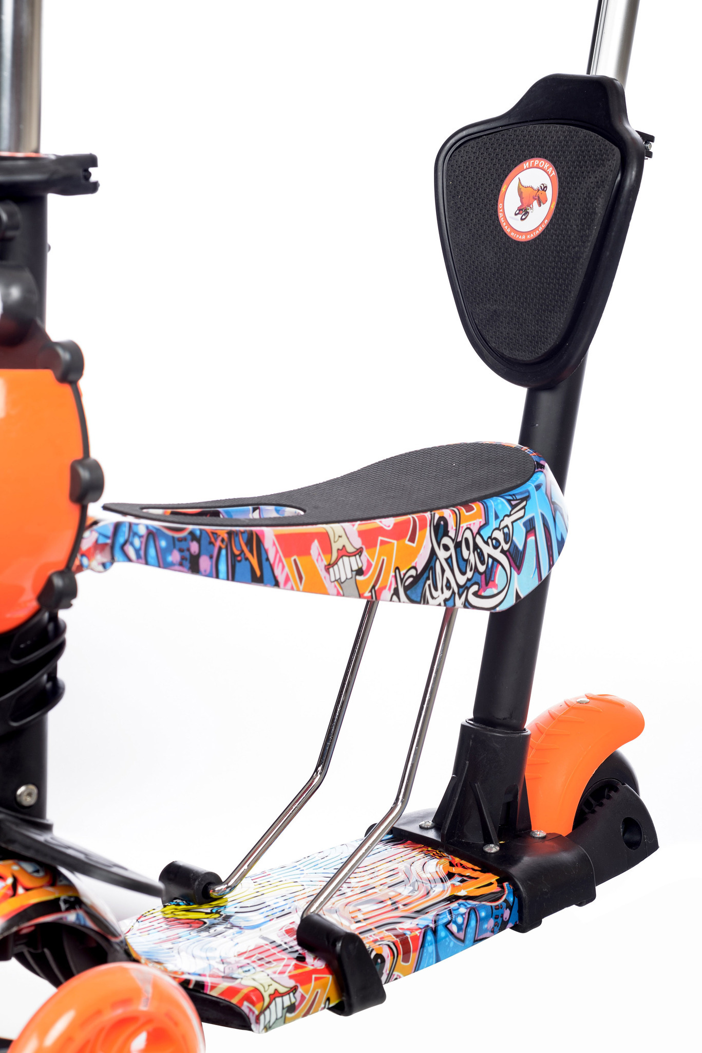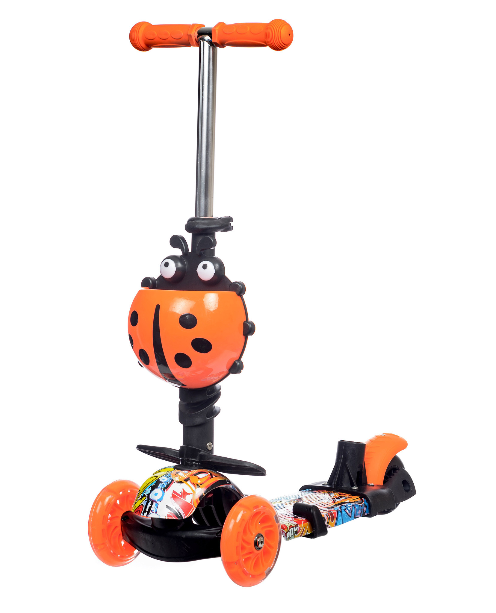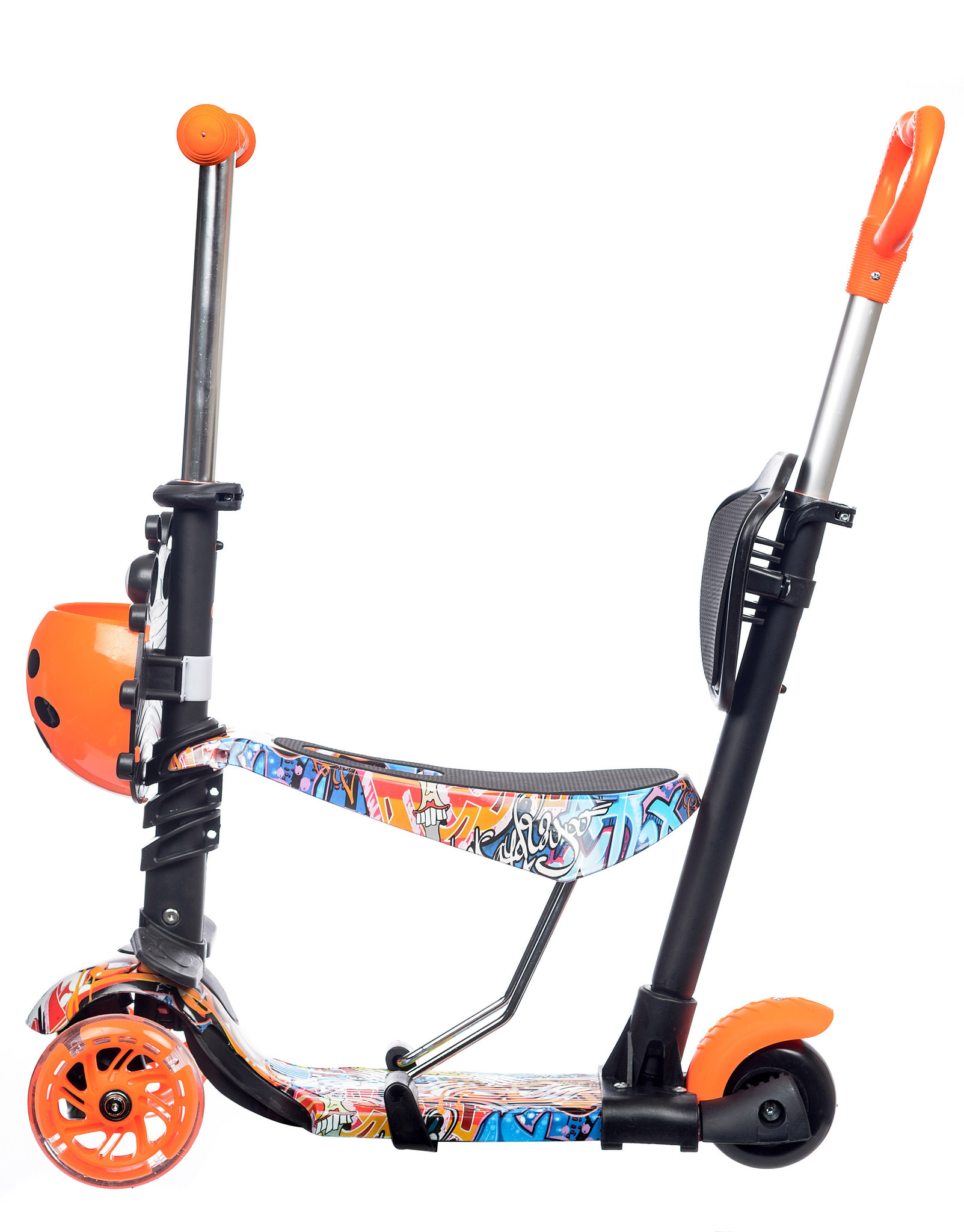 Самокат детский трехколесный + беговел Игрокат Букашка Принт Граффити со светящимися колесами и родительской ручкой