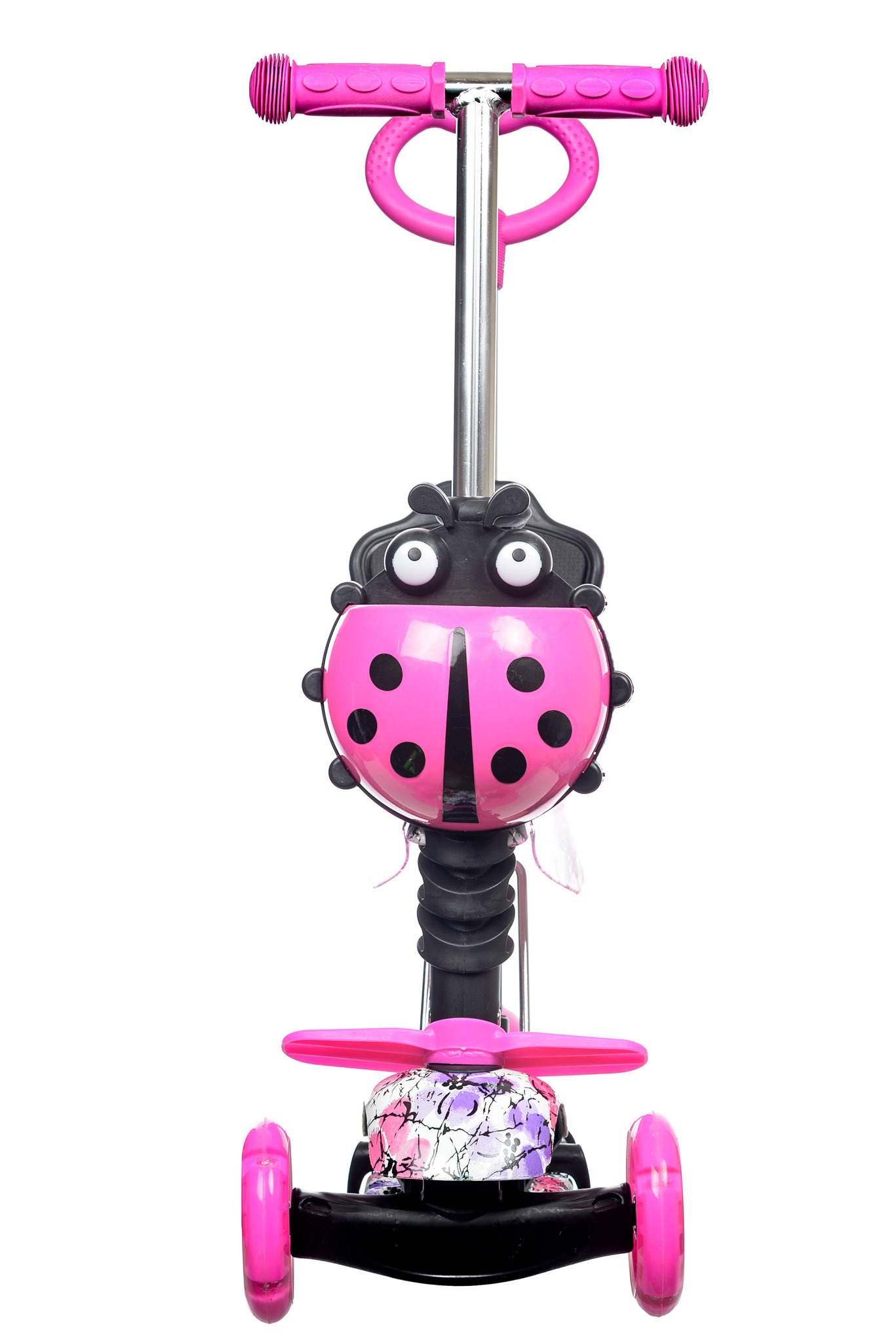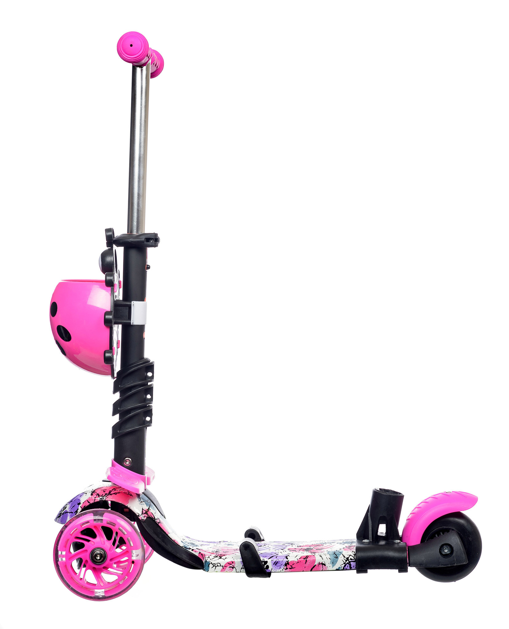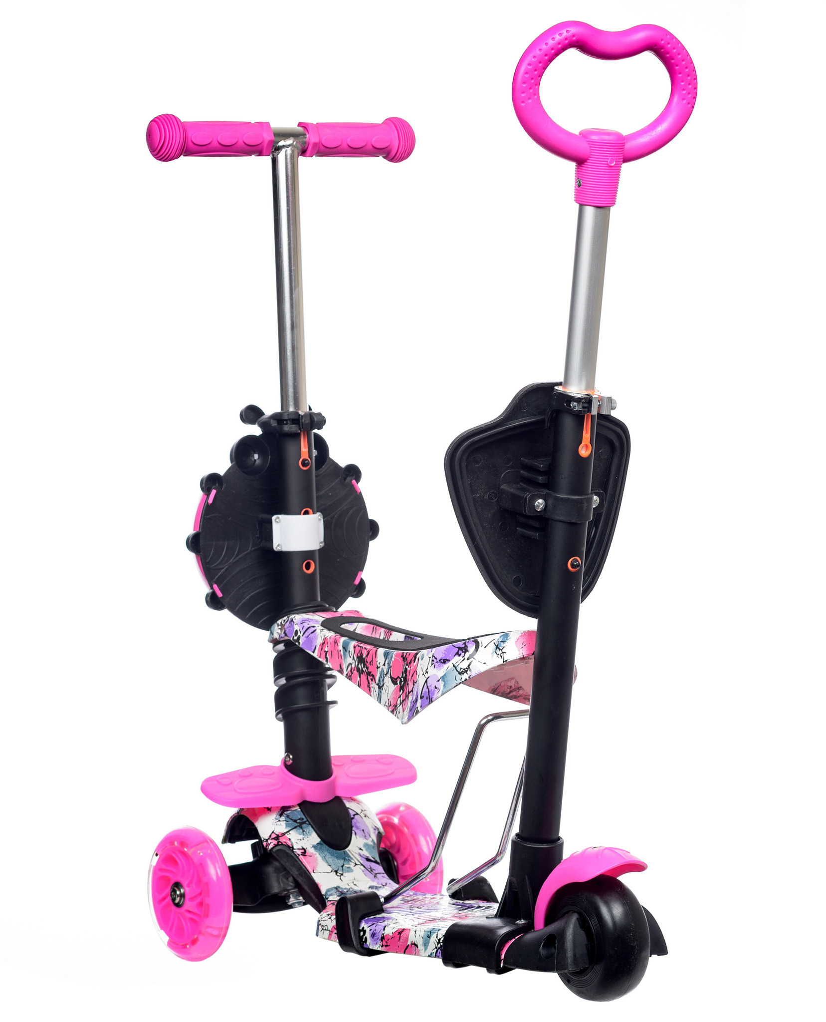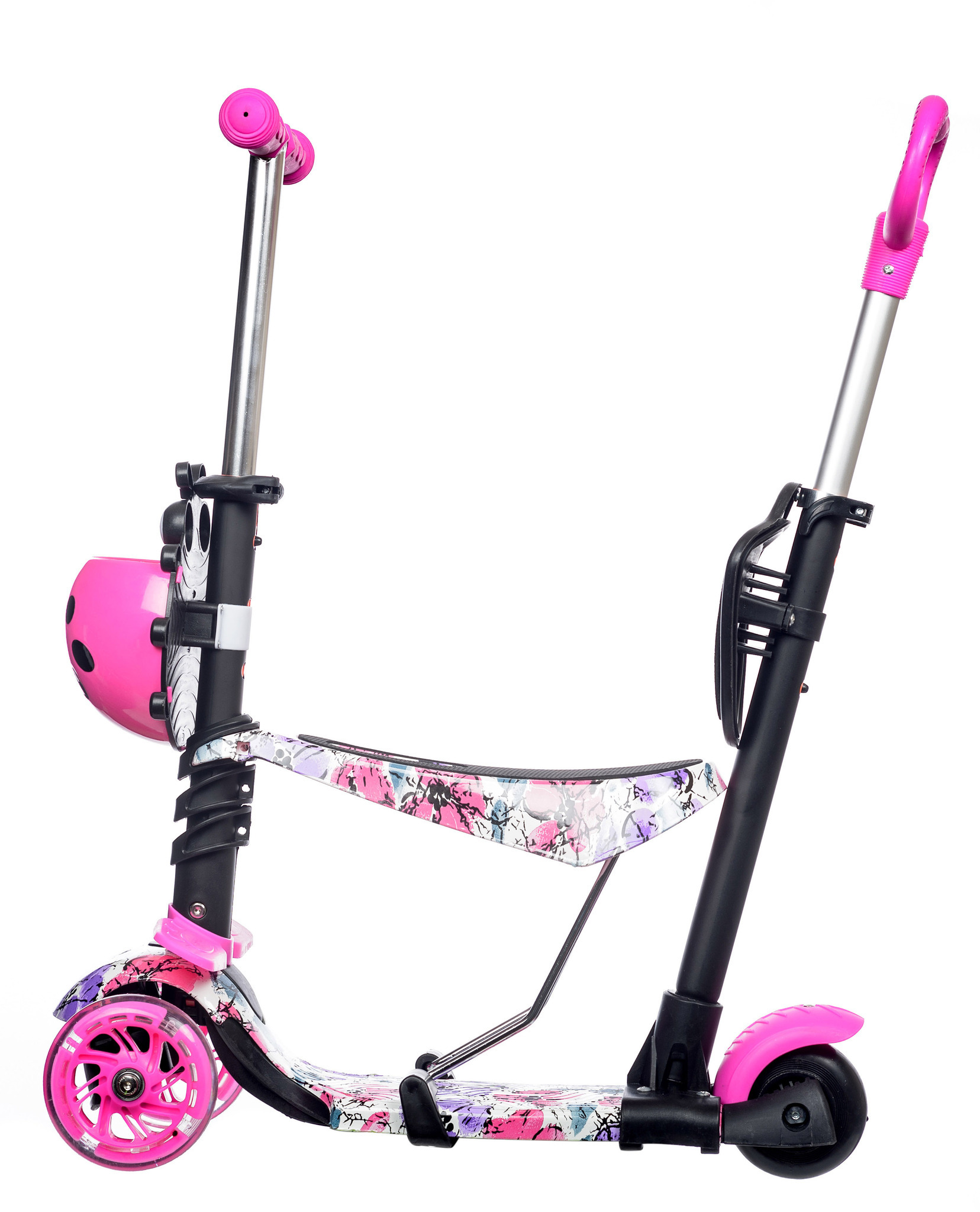 Самокат детский трехколесный + беговел Игрокат Букашка Принт Сакура со светящимися колесами и родительской ручкой