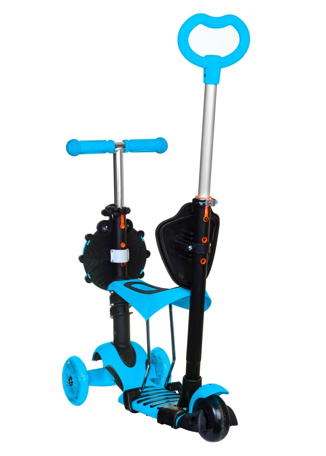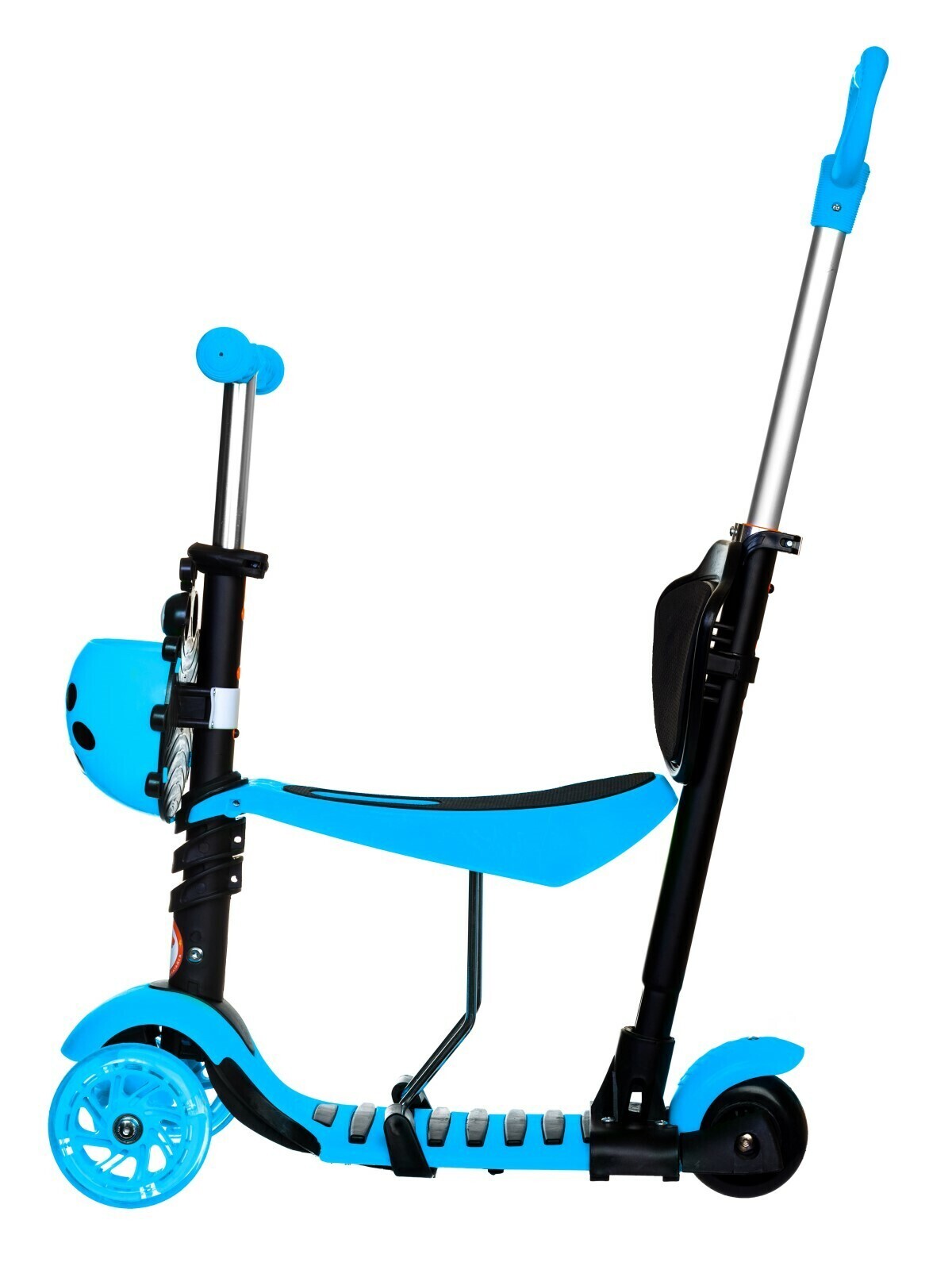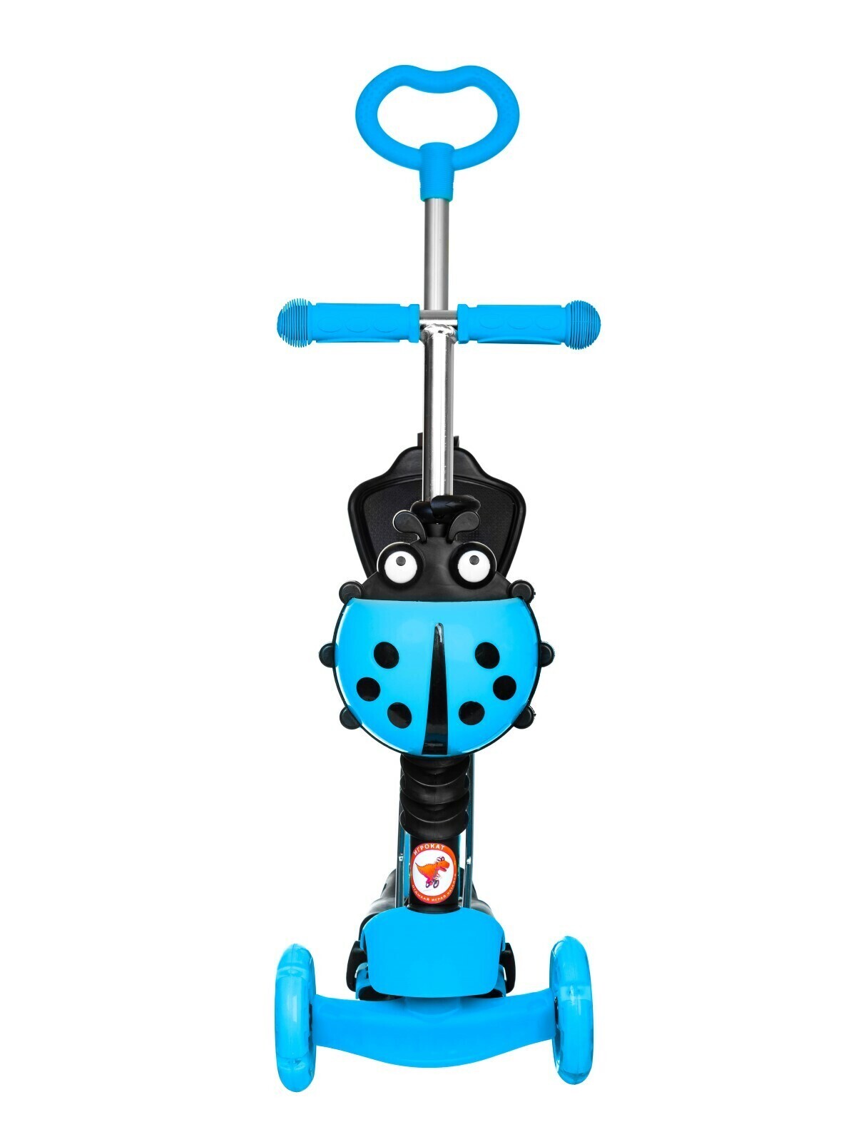 Самокат детский трехколесный +беговел Игрокат Букашка синий со светящимися колесами и родительской ручкой