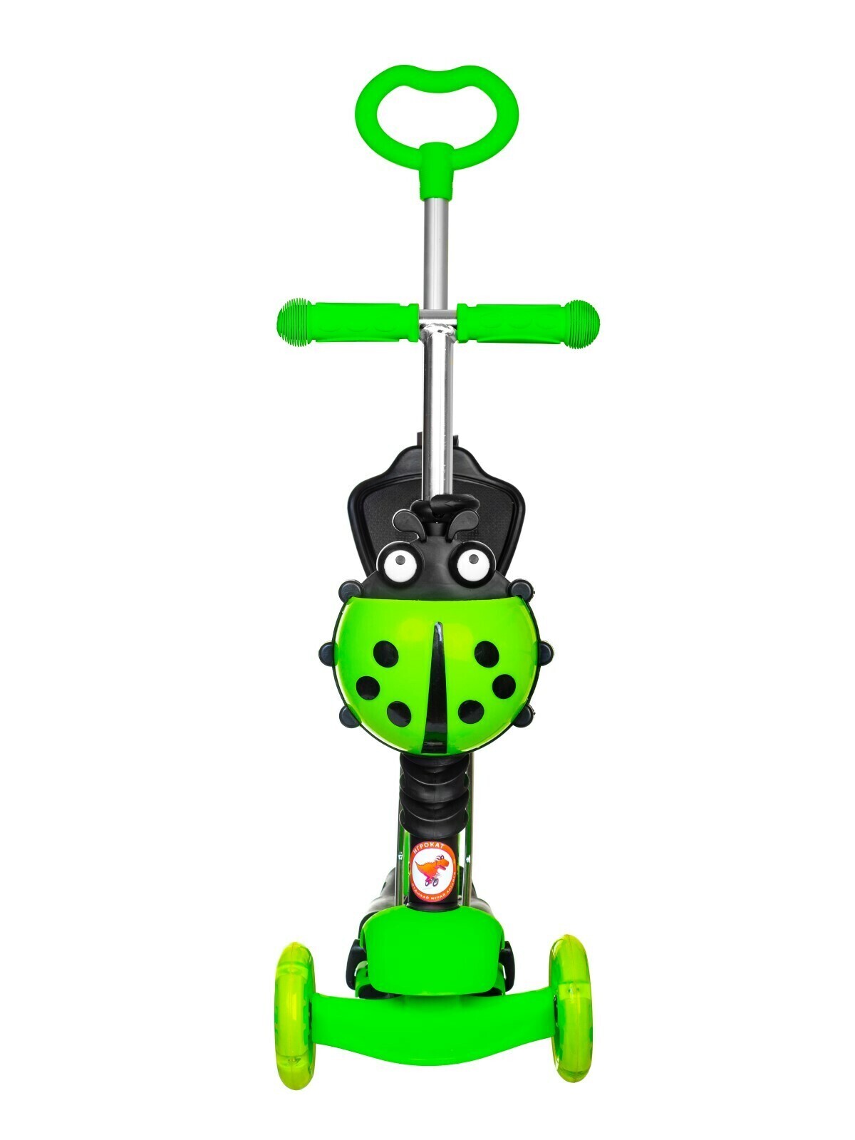 Самокат-беговел Игрокат Букашка очень удобен как для детей, так и для родителей. Ребенок может кататься на нем как на самокате, ездить как на беговеле, и путешествовать сидя или стоя, когда взрослые катят его за ручку сзади.