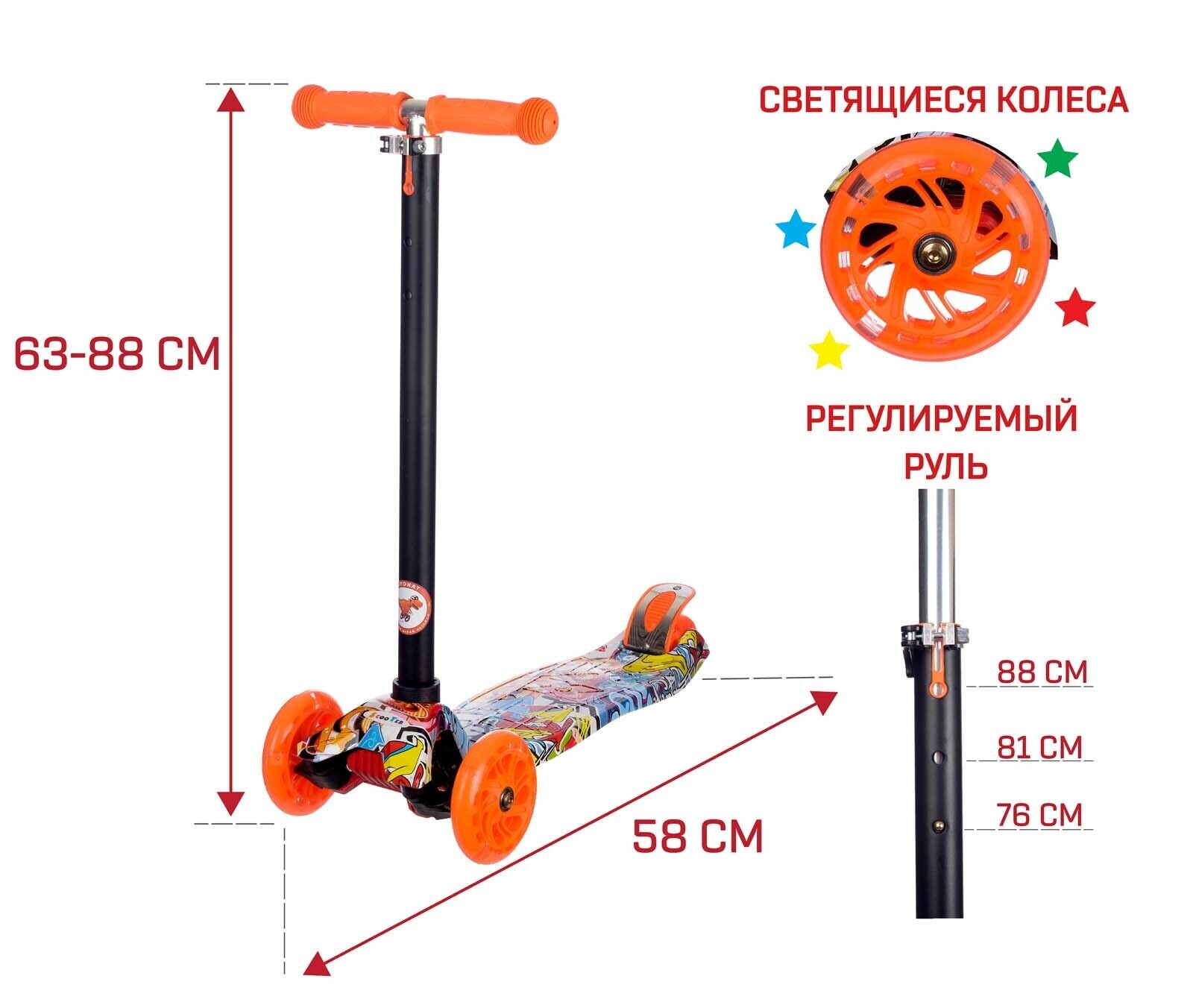 Самокат детский трехколесный Игрокат Dino Print Graffiti Orange