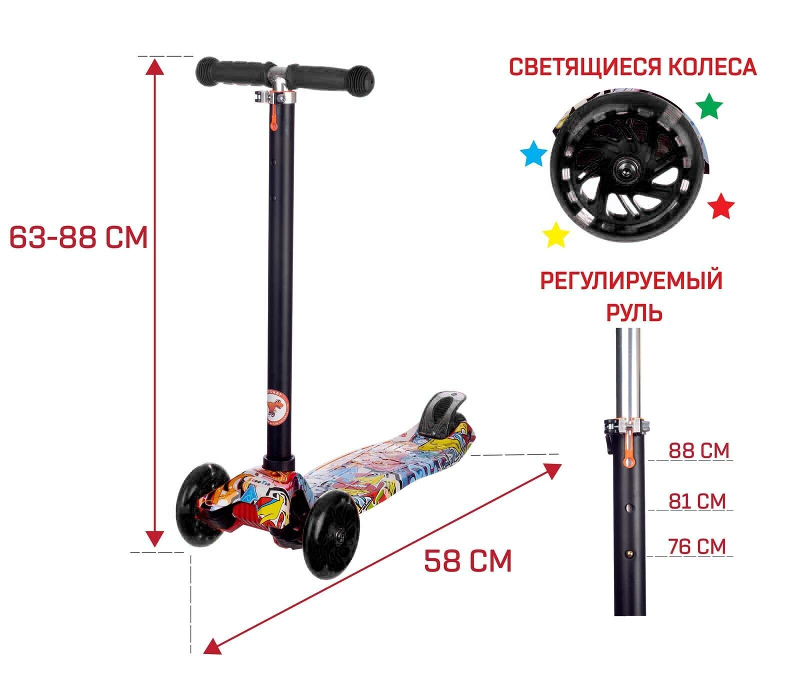 телескопическим рулем. Руль регулируется по высоте от 64 см. до 86 см. от