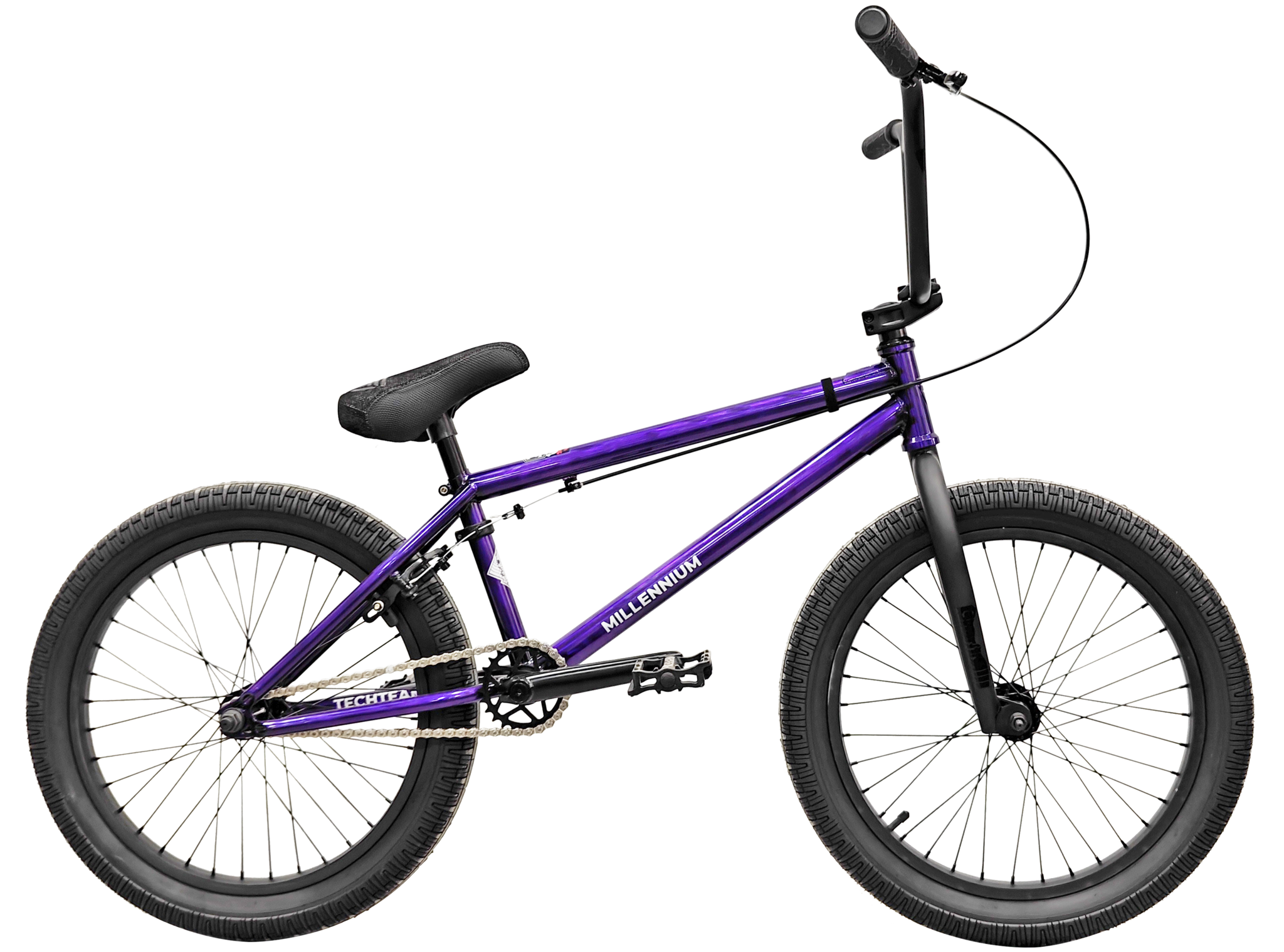 На этом BMX стоит трехкомпонентная хромомолибденовая система с алюминиевыми педалями-платформами и передней алюминиевой ведущей звездой на 25 "зубов". Вилка, рама и руль сделаны из стали, так как именно на эти части велосипеда приходится основная часть нагрузки. Остальные части BMX сделаны из алюминия, что бы сделать велосипед максимально легким. Некоторые опытные Райдеры снимают тормоза, чтобы еще больше выиграть в весе велосипеда. Мы не советуем это делать, так как безопасность важнее всего.