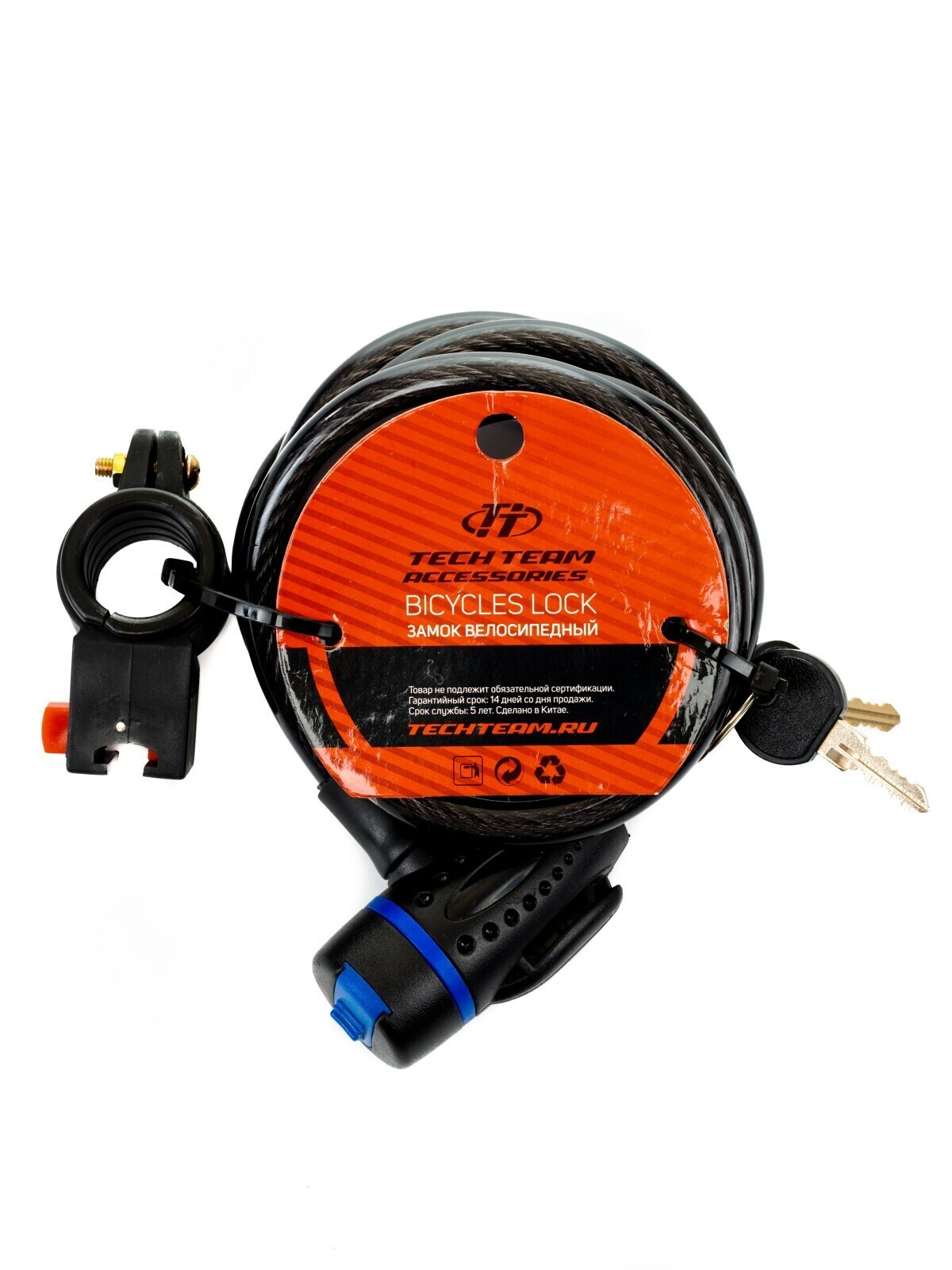 держатель для удобства транспортировки. Замок имеет спиральный трос и